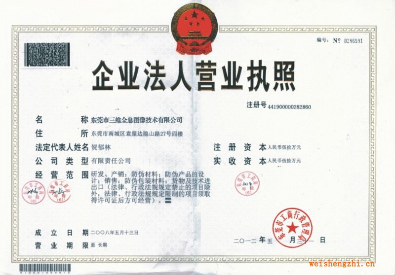 | 发证机构: | 东莞市工商行政管理局 | 发证时间 : | 2008-05-13 |