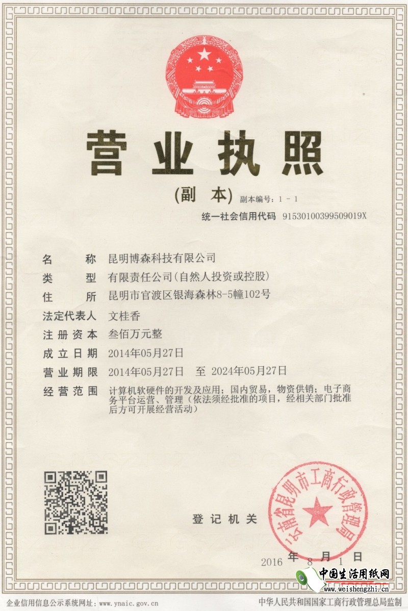 公司三证合一执照。