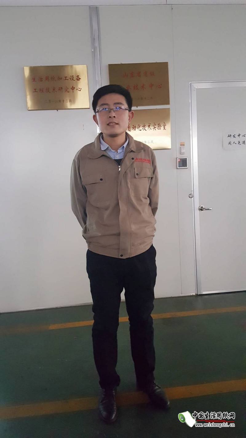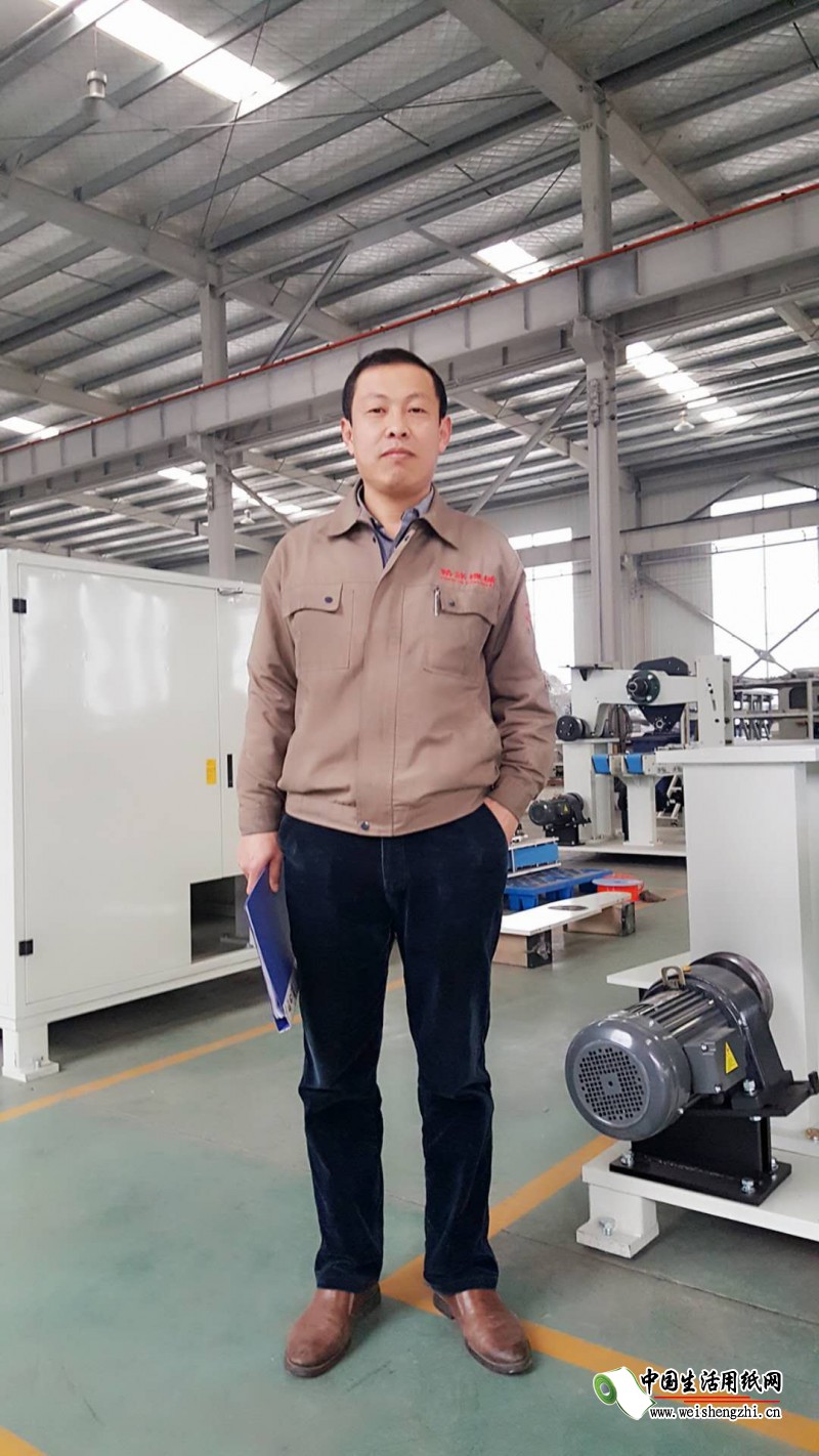 张世福,精诺机械事业二部部长,主要负责卫生纸复卷机、自动锯切纸机以及生活用纸包装机等设备。