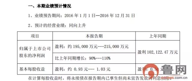 1月10日,记者获悉,晨鸣纸业发盈喜,预料截至2016年12月31日止年度归属於上市公司股东的净利润为19.5-21.5亿元人民币,较2015年同期增长90%至1.1倍。
