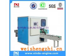 CIL-FT -281型大回旋面巾切纸机机是一台用于自动连续切断折叠类的纸巾产品,如盒装面巾纸或折叠擦手纸。整机的设计及制造采用了新的电子技术及伺服传动技术,大大增强了切纸的稳定性,并提高了纸巾的切断质量。本切纸机的切断速度极高,单进纸通道机型每分钟可切75个面巾,双进纸通道机型每分钟可切150 个面巾,所以一台CIL-FT -281型大回旋面巾切纸机可与几台折纸机配套使用,而且切不同尺寸的面巾时调整简单、方便。夹纸切断部分可就不同尺寸的面巾随时进行调整,无需另外更换部件,切面整洁、平整,不会压挤或损坏面巾。
