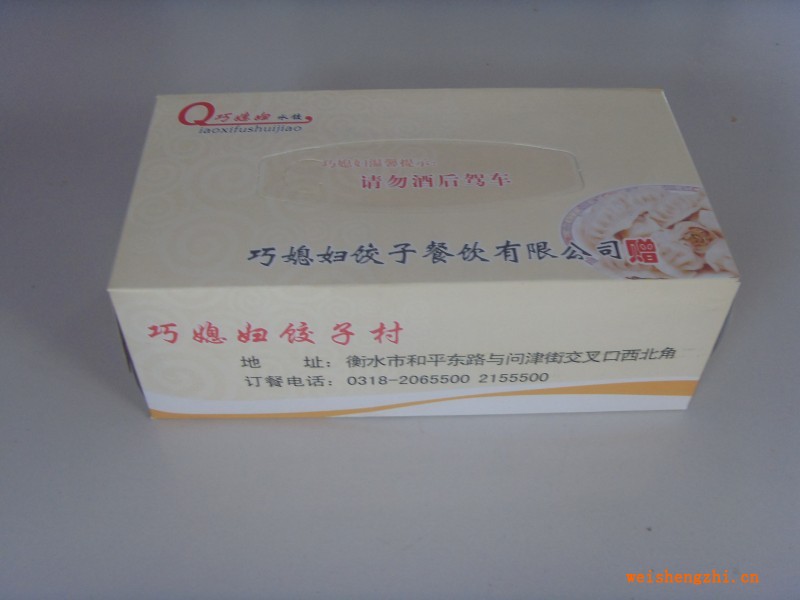 材质:五月花原纸 纯木浆 重量:15(g/m2) 纸张尺寸 :20cm*20cm 纸盒尺寸 23cm*12cm*6cm(可以根据客户自己来定)可以印制企业广告和LOGO