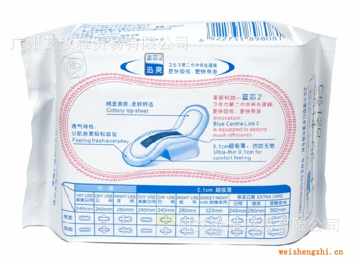 - 2、革新科技--蓝芯,卫生巾的CPU中央处理器,提升速度3倍,吸得多,吸得快。