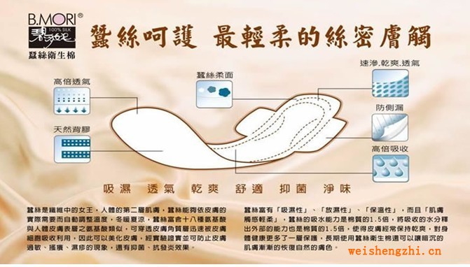 一、天然的蚕丝材质使碧多妮卫生棉优于一般市售产品。