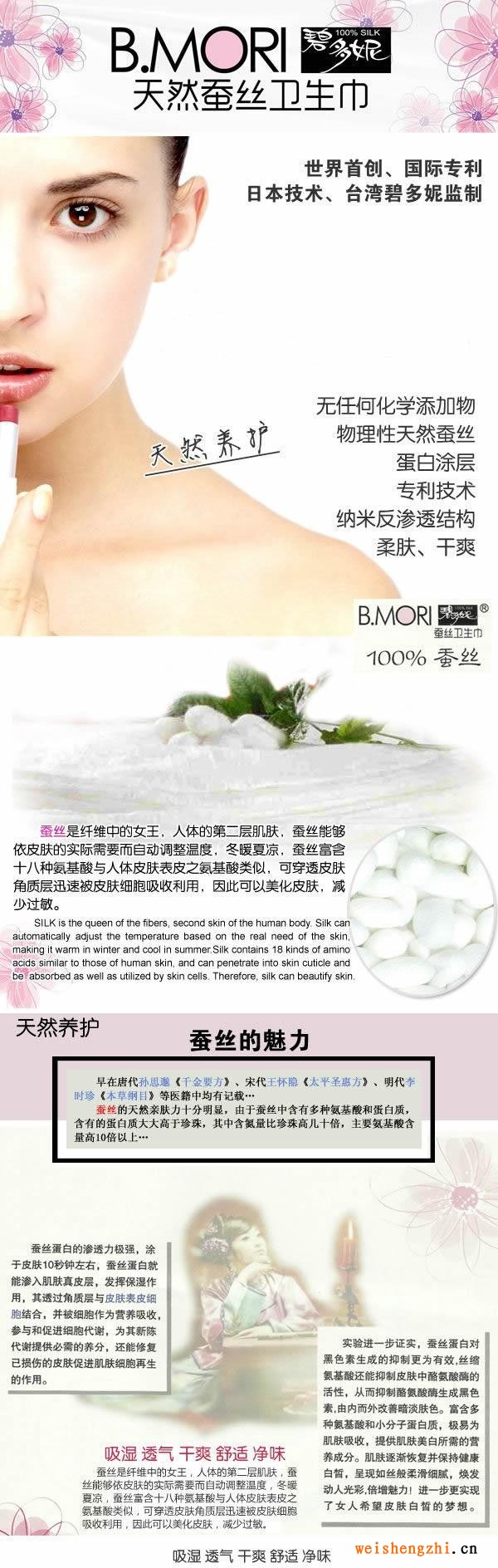 碧多妮蚕丝卫生巾的特点: