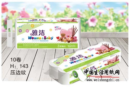雅洁压边纹规格是 10卷、14.3高、1300克