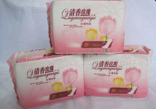 » 厂家供应劲爽干爽网面的卫生巾日夜两用混装的卫生巾