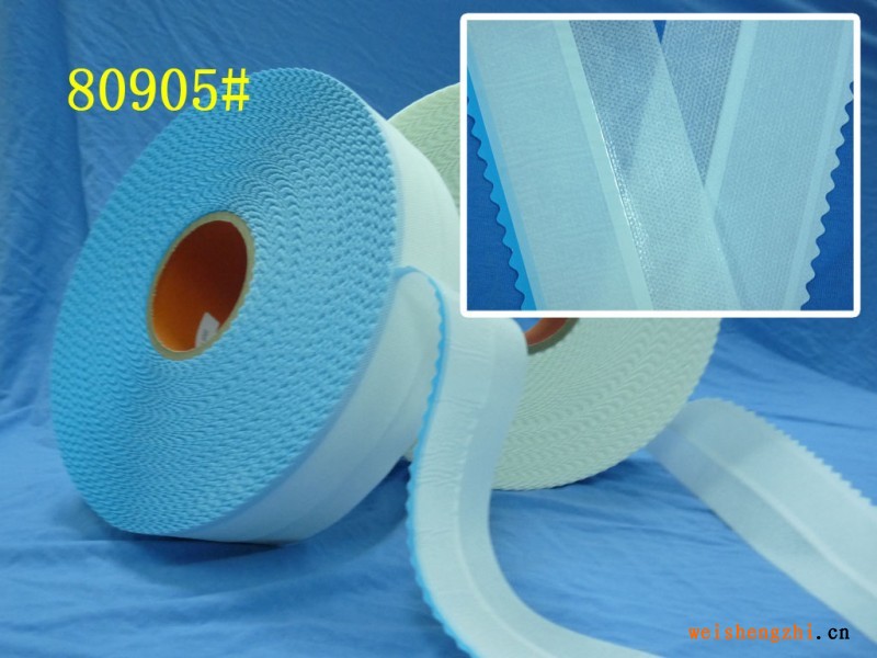 专业生产及销售婴儿纸尿裤专用胶带品牌:6mia 型号:84905#,无纺布淋膜带胶魔术左右腰贴规格:64mm×230m/卷包装:4卷/箱(2卷左,2卷右) 纸箱:48cm×48cm×27.5cm 环保丙纶芝麻点无纺布淋膜带胶带14mm宽PP蘑菇头射出勾,搭配魔术前腰贴使用效果极佳,可随意反复粘贴,防尘防溶剂,有波浪边或直边或彩色边设计选择,使用无毒无公害可降解胶粘剂。