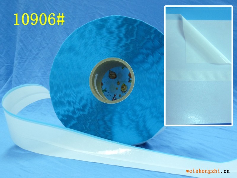 专业生产及销售婴儿纸尿裤专用胶带品牌:6mia 型号:10906#透明PP流延膜左右腰贴规格:60mm×600m/卷包装:4卷/箱(2卷左,2卷右) 纸箱:45.5cm×45.5cm×26.8cm 环保透明CPP膜(聚丙烯流延膜)复合PP流延膜副贴,搭配Bopp膜前腰贴使用效果极佳,可随意反复粘贴,经济实惠,有蓝边或中条蓝边设计选择,使用无毒无公害可降解胶粘剂。