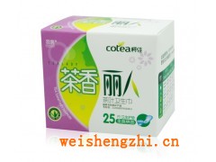 1)、独特茶工艺层:在卫生巾巾中添加独特活性茶因子工艺层,利用活性茶因子的诸多天然保健功效和药理作用,有效抑味除菌,更能抑制细菌滋生。