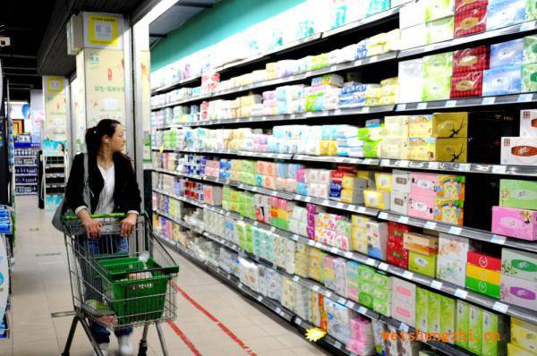顾客在江苏连云港市一家大型超市购买纸巾纸产品。新华社发(王春 摄)