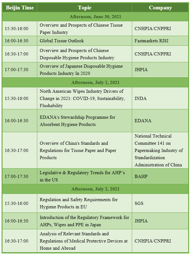 生活用纸委员会(CNHPIA)、日本卫生材料工业联合会(JHPIA)、锐思、北美非织造布协会(INDA)等全球专家齐聚云端,通过线上论坛形式,全方位解读行业市场情况。