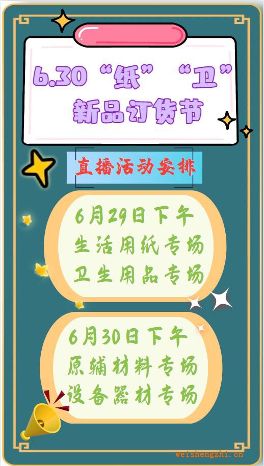 2023年6月29日,第四届6.30 “纸”“卫”新品订货节暨第三届ClOUD EXPO of Tissue, AHPs, Wipes and Nonwovens全球云展会即将拉开帷幕!本次活动为期2天(2023年6月29日-6月30日),分为国内站的新品订货节和海外站的ClOUD EXPO全球云展会,活动集线上国际论坛、新品直播、云洽谈等内容于一体,为全球行业企业商贸洽谈提供更多路径,预计将吸引10万+全球业内人士云端洽谈!