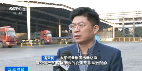 太阳纸业集团市场总监潘天倚:“这一轮价格上涨是非常激烈的,到目前为止,我们跟上半年的价格相比,上涨幅度基本上达到25%以上。”