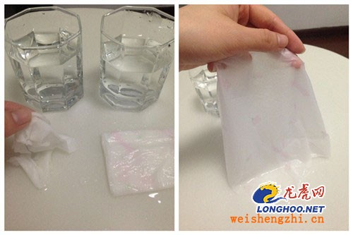 本次实验小编选择卷纸(俗称厕纸)和面巾纸这两类常用的生活用纸来实验。先将卷纸和面巾纸各取一张,放入盛满清水的容器中,静置5秒后取出,左边放入的是卷纸,取出后已经无法拿起,纸张在短短5秒钟已经被泡烂,而在右边的面巾纸依然“坚挺”,小编把已经浸湿的面巾纸展开,依旧是完整的一张。实验证明,和卷纸相比,面巾纸不易溶于水,如果你长期用面巾纸当厕纸来用,家里的马桶为什么常常不通畅也许你就找到原因了。
