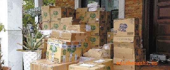 拼单的纸尿裤到了,孙竹君家里放不下,就堆在了门口。