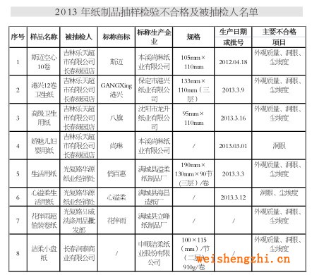 据介绍,为加强流通领域纸制品商品质量监管,保护消费者合法权益,长春市工商行政管理局第三季度在市区批发市场、商场、超市等重点经营场所,对纸巾纸、卫生纸、湿巾、卫生巾(含卫生护垫和纸尿裤)开展了商品质量监测。