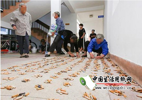 记者在嵊州当地某论坛上看到,11日有网友晒出母亲当天捡的烟蒂照片,共换了纸巾34包,按50个换一包计,至少捡了1700个。