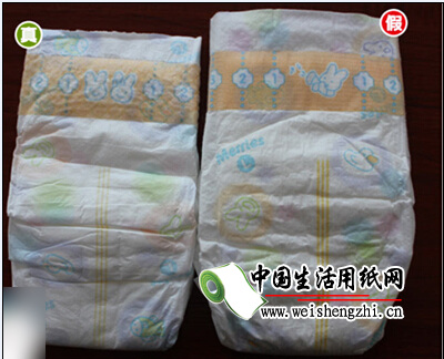 第三,腰上松紧真货非常精致紧密,假货非常粗糙 ,尿裤材质差别很大。