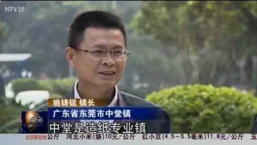 广东省东莞市中堂镇镇长姚铸锐:原来总共有25家造纸厂,我们中堂是水乡,大部分的河污染还是比较严重,2015年市政府鼓励一些比较小的造纸厂退出,我们这次总共退出了12家,现在还保留13家。