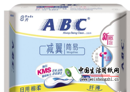 ABC卫生巾,卫生巾品牌之一,由广东景兴健康护理实业股份有限公司研发、生产和销售,是其旗下的系列产品之一。公司以发展专业、健康、卫生的个人护理用品品牌为方向,致力于成为服务广大消费者的“个人护理专家”。高品质的产品是在卫生用品行业中保持竞争力的基础,景兴公司旗下的品牌包括ABC系列卫生巾、清丽系列湿巾、EC系列湿巾、ABC’s bb系列湿巾、Free系列卫生巾等,现已在市场上占据重要位置,受到广大消费者的欢迎。