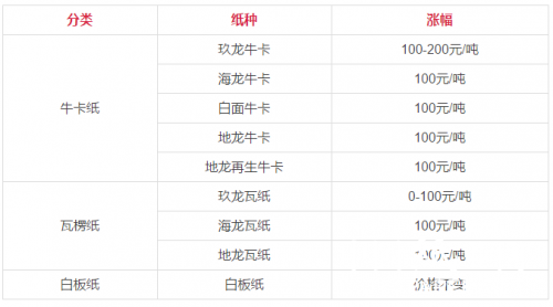 9月1日,东莞玖龙纸业宣布所有牛卡、瓦楞纸涨300元/吨,白板纸涨200元/吨,执行时间9月1日至9月10日。
