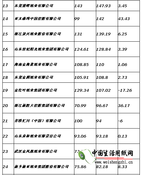 报告列出了2017年重点造纸企业产量前30名企业名单,玖龙纸业以1313万吨列第一位,理文造纸和晨鸣集团分列二、三位,以上三家的产量都超过了500万吨。年产量超过100万吨的企业数量为19家,数量与2016年持平。