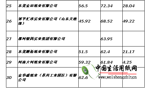 2017年,30强企业的入门门槛是60.11万吨,比2016年的门槛(50万吨)提高了20.22%,提升明显。30强企业的总产量是6566.9万吨,占全国纸及纸板总产量的59%,比2016年30强企业的总产量(6226.3万吨)增长了5.47%,集中度提高1.6个百分点(2016年占比为57.4%)。
