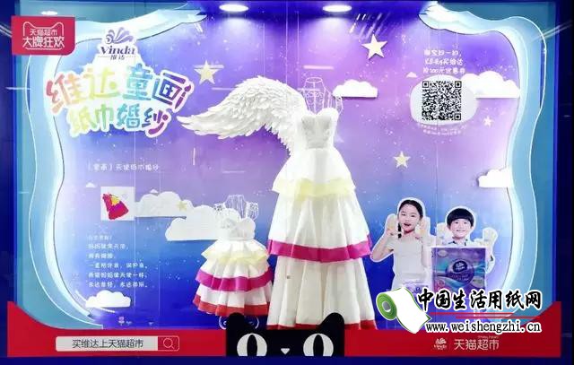 近日,维达联手孙俪为孩子们在上海中山公园地铁站举办童画纸巾婚纱展。