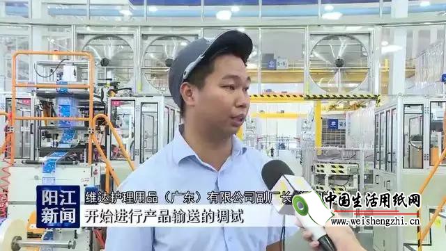 维达护理用品(广东)有限公司副厂长汤润湛表示:“由于后加工设备比较精密,生产环节较多,涉及的工段包括卷取、折叠、分切、包装等相对复杂,所以在一个月前就开始进行调试,以确保后期从阳江第一台造纸设备输送来的原纸,能够分切加工达到合格的状态。”