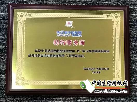 9月28日,第十二届中国航展特约服务赞助商签约暨授牌仪式在珠海举行。会上,维达国际控股有限公司,被大会授予“第12届中国国际航空航天博览会特约服务商”称号。