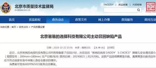 10月22日,北京市质量技术监督局官网发布召回警示。