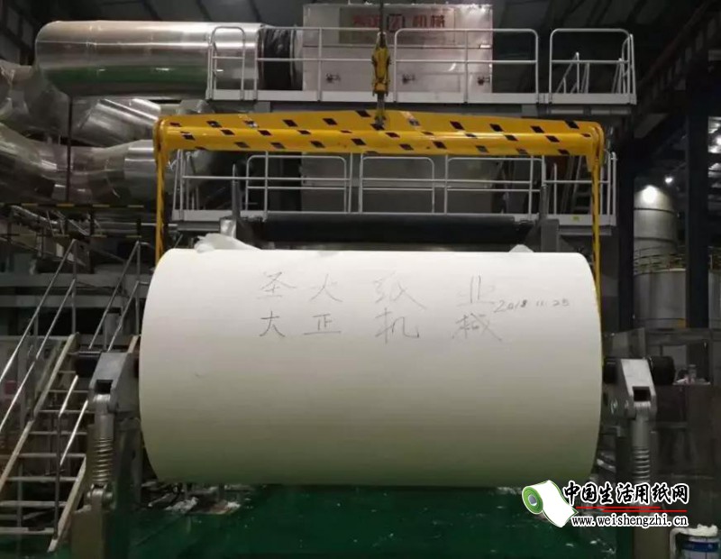 11月25日,广西壮族自治区南宁市圣大纸业有限公司二期项目第一台卫生纸机开机投产。该纸机是由山东大正机械提供的新月型卫生纸机,幅宽2,850mm,设计车速1,200m/min。