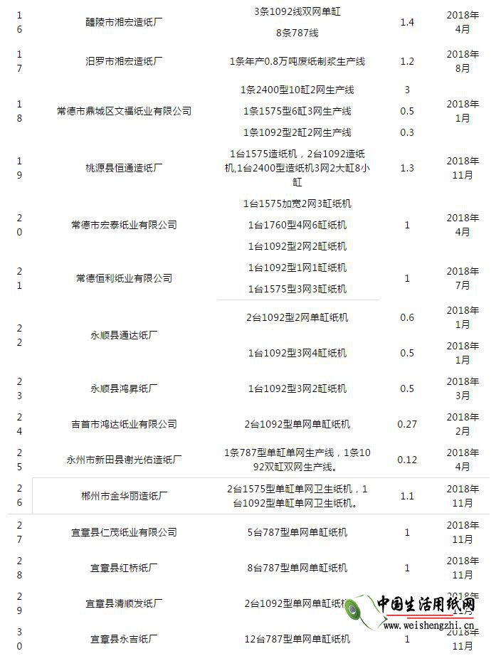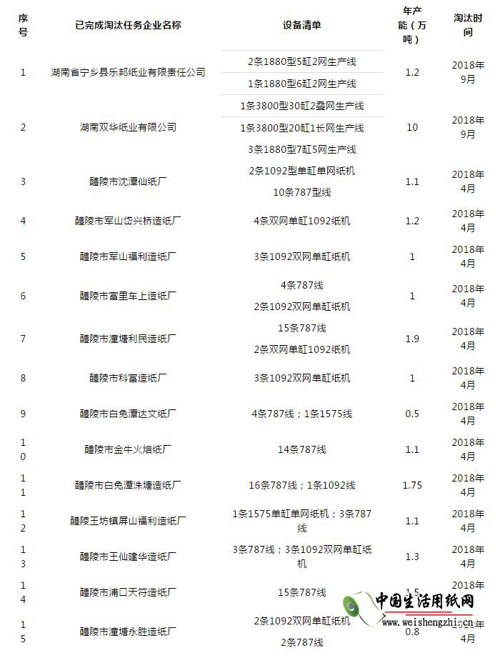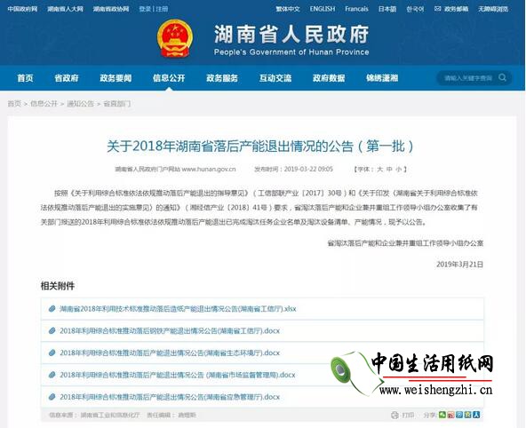 3月21日,湖南省淘汰落后产能和企业兼并重组工作领导小组办公室公布了《关于2018年湖南省落后产能退出情况的公告(第一批)》。其中造纸行业名单中有造纸企业57家,合计退出落后产能73.04万吨。