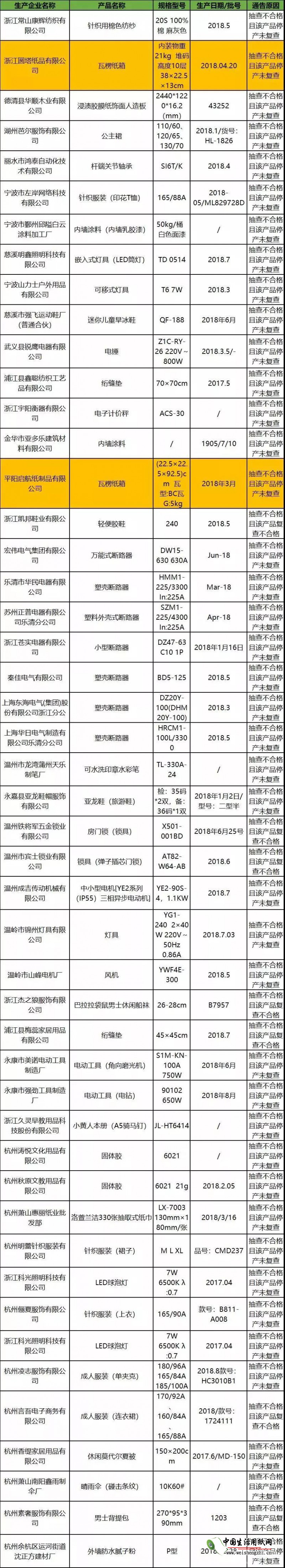 浙江质监局提醒广大消费者,谨慎选择以下企业生产的该种产品。
