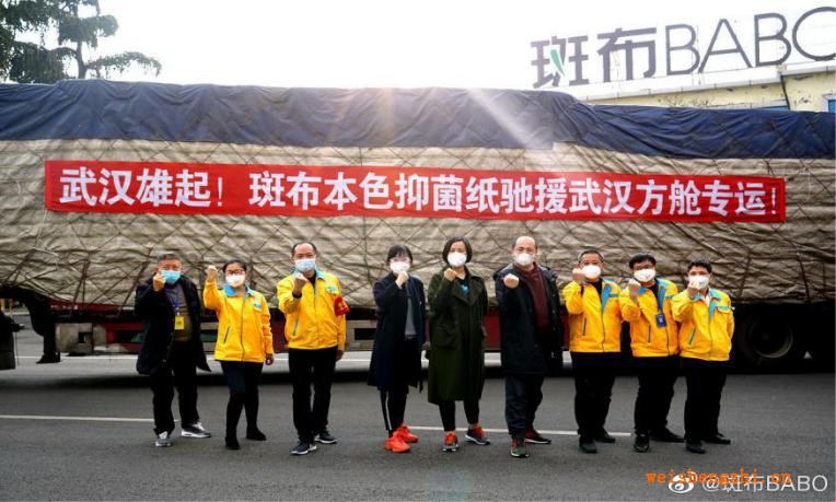 当公司得知武汉方舱医院大量紧缺生活物资,斑布主动联系公益慈善基金会,再次组织货源,于2月11日起,将分两批次组织车队定向武汉九家方舱医院捐 赠斑布本色生活纸 201万元,为武汉方舱医护人员及患者提供生活方便。