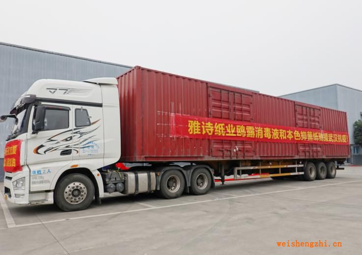 2月19日上午,武汉的5家受赠方医院和湖北省警察协会先后发来物资接收函,所有运输通行手续全部完善。雅诗纸业马上联系运输车辆,配双驾驶员,人休车不休,以快的速度将物资运送武汉。