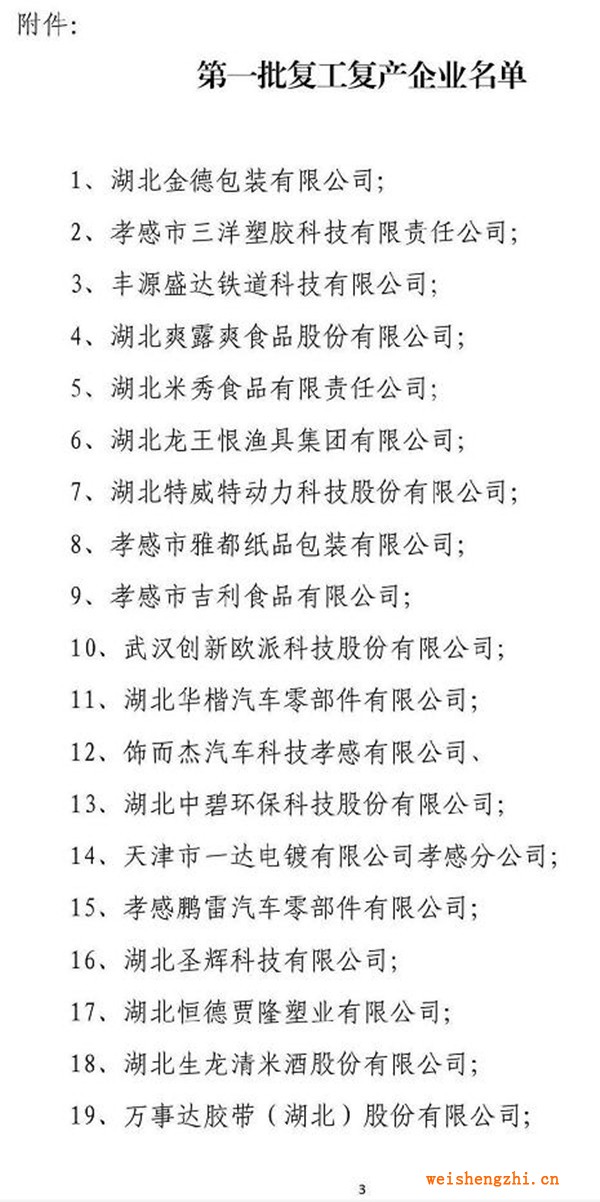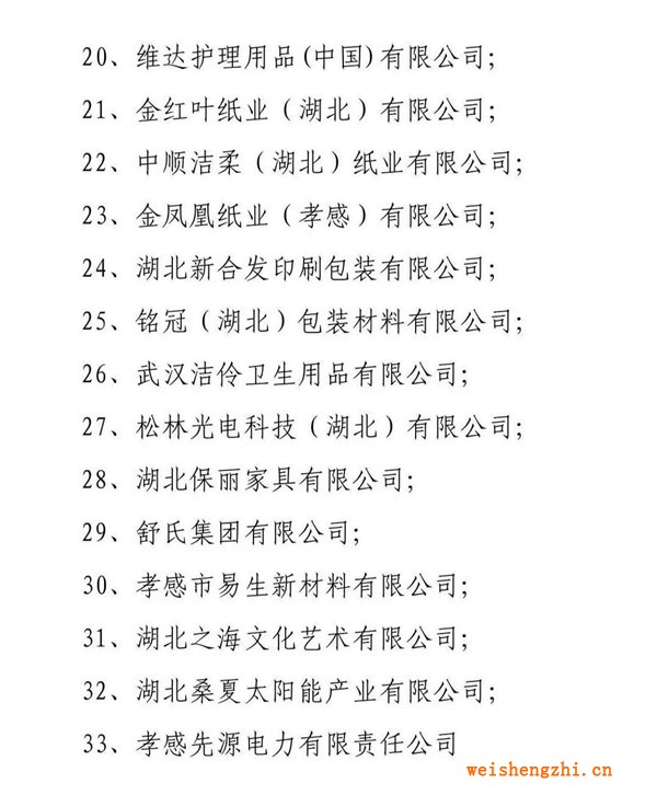孝南首批复工复产企业名单包含了造纸企业维达、金红叶、中顺洁柔和金凤凰纸业。