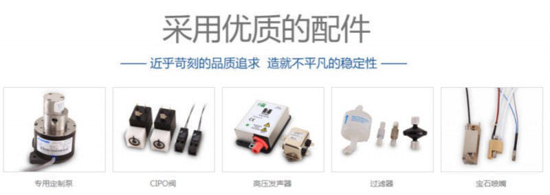 4、宝石防堵塞喷嘴,增加机器稳定性,减小堵塞故障率;