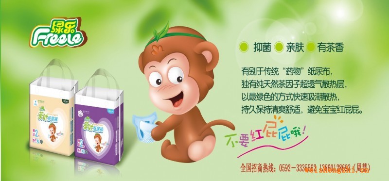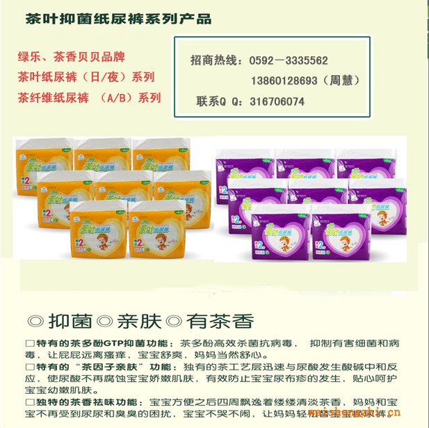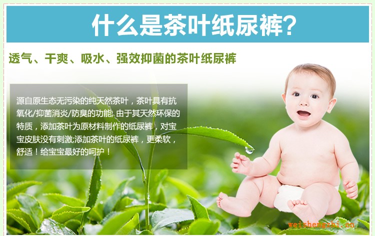 健康型茶叶纸尿裤的大特点:消炎杀菌,专治红屁屁及过敏,告别尿臭味