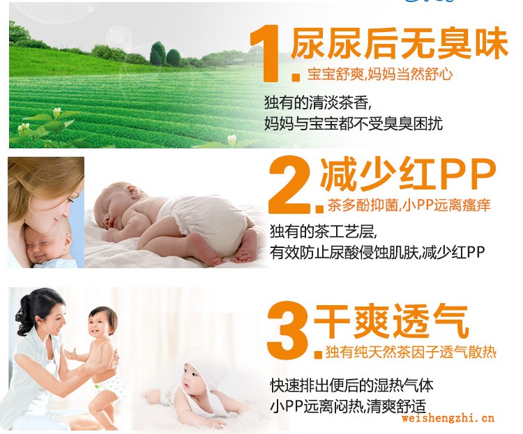 健康型茶叶纸尿裤的大特点:消炎杀菌,专治红屁屁及过敏,告别尿臭味