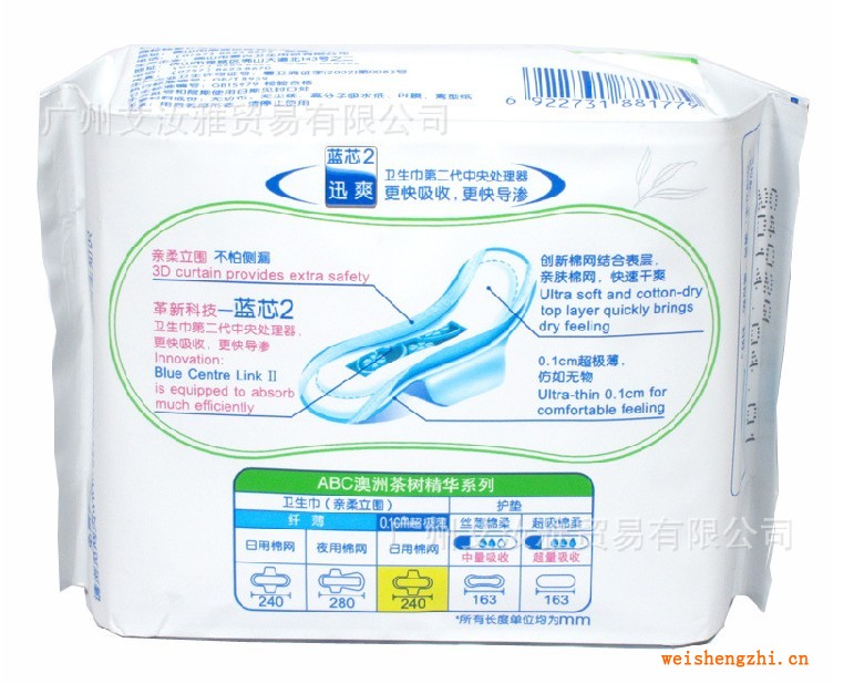 包装:8片/包 24包/箱 表面材质:棉柔亲肤