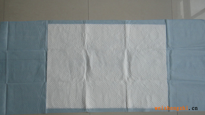 产品结构:底部PE流延膜,上敷热轧无纺布,中间吸液层由进口优质绒毛浆及高分子吸水树脂、多层卫生纸、无尘纸组成。