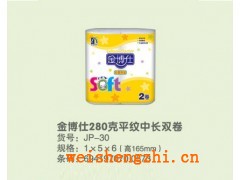 卫生纸,主要供人们生活日常卫生之用,是人民群众不可缺少的纸种之一。为了使卫生纸柔软,通常利用机械方法使纸页产生皱纹增加卫生纸的柔软度。制造卫生纸的原料很多,常用的有棉浆、木浆、草浆、废纸浆等。卫生纸要求不施胶,如果生产带色卫生纸时,要加入配置好的色料。卫生纸的特征是吸水性强,细菌含量少(细菌总数每一克纸重不许超过200~400个,大肠杆菌等致病菌不许有),纸页柔软,厚薄均匀,无孔洞,起皱均匀,色泽一致,含杂质少。如生产小卷双层卫生纸时还应打孔节距一致,针孔清晰,易撕、整齐。