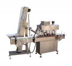 该机种设计新颖独到、机械扭矩控制智能化,并且操作与调节十分便利,操作人员只需将瓶盖置于瓶口上,瓶子在向前运行的过程中,瓶盖被三组搓盖轮自动拧紧。既可用于单机生产,更是连线生产的理想机型。可方便地升级为完全的自动旋盖机ASP,我们有提升式、斜盘式、震荡式等落盖系统,可根据实际需要选配。