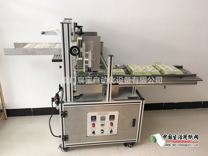 3、根据热熔胶来设定封盒机加热温度,待胶完全熔化;