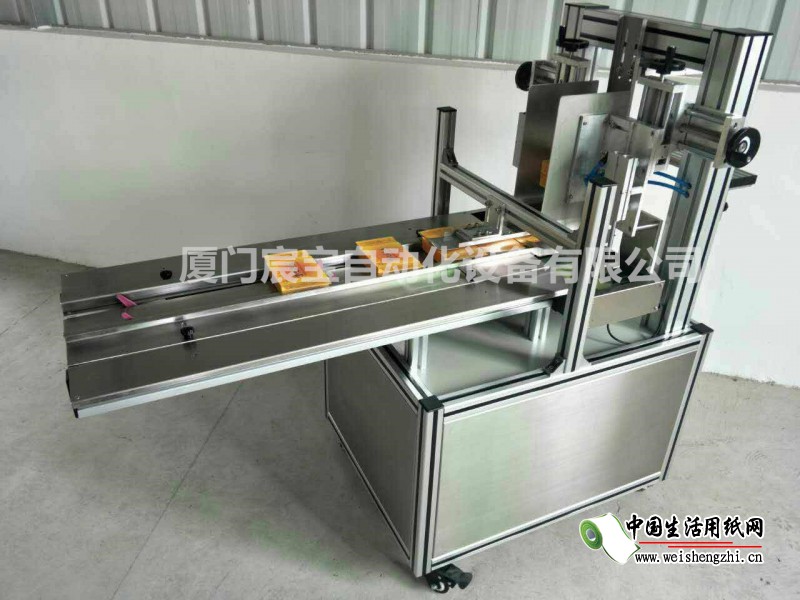 5、放置装好产品的纸盒到封盒机导入槽;
